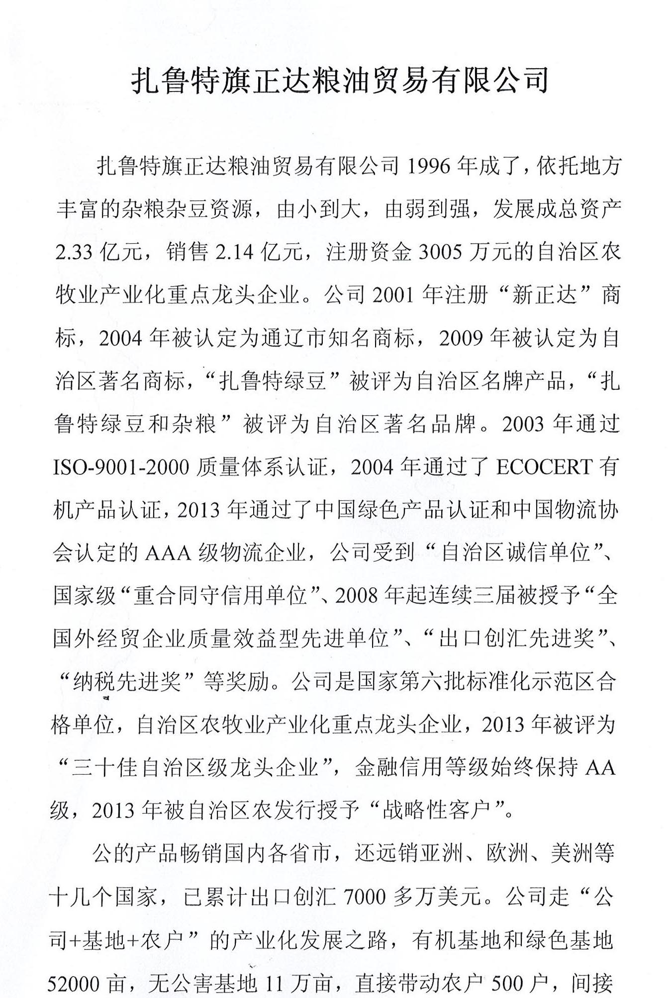 标题:扎鲁特旗正达粮油贸易有限公司简介