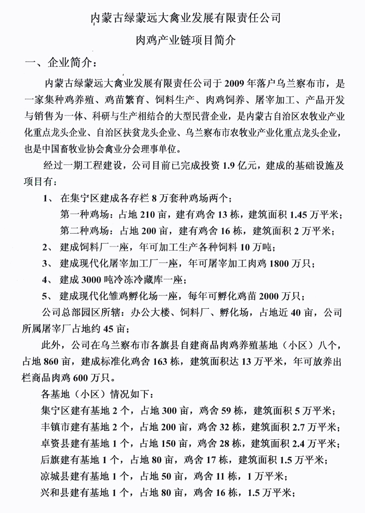 标题:内蒙古绿蒙远大禽业发展有限责任公司简介