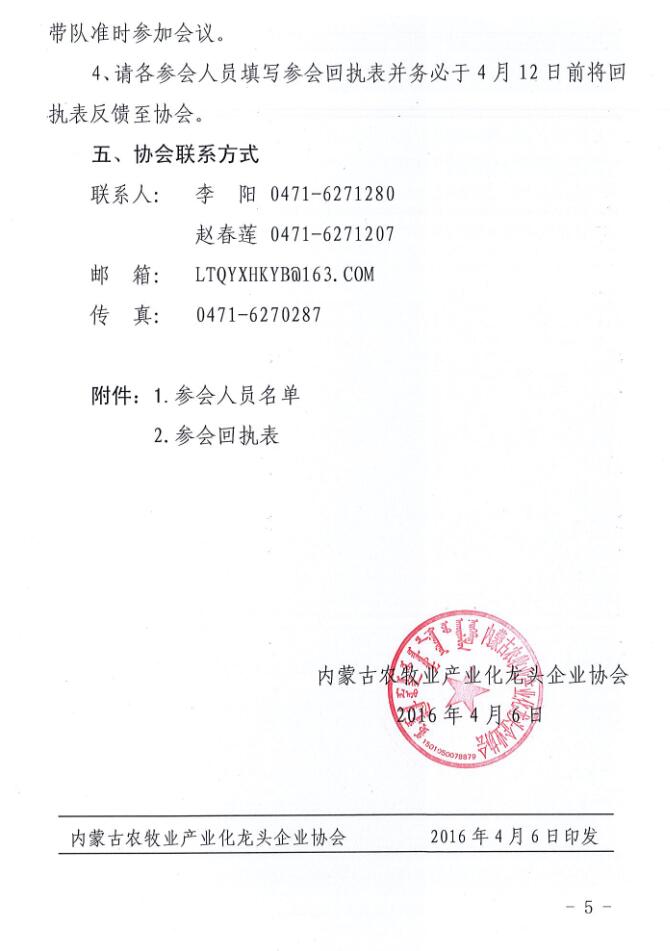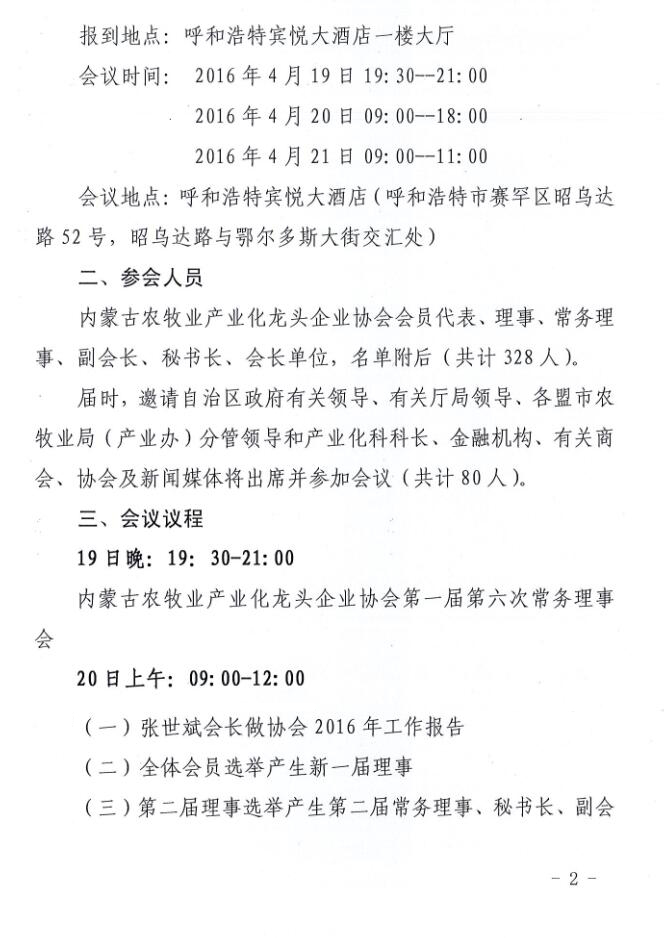 关于召开内蒙古农牧业产业化龙头企业协会第二届第一次理事会暨会员代表大会的通知