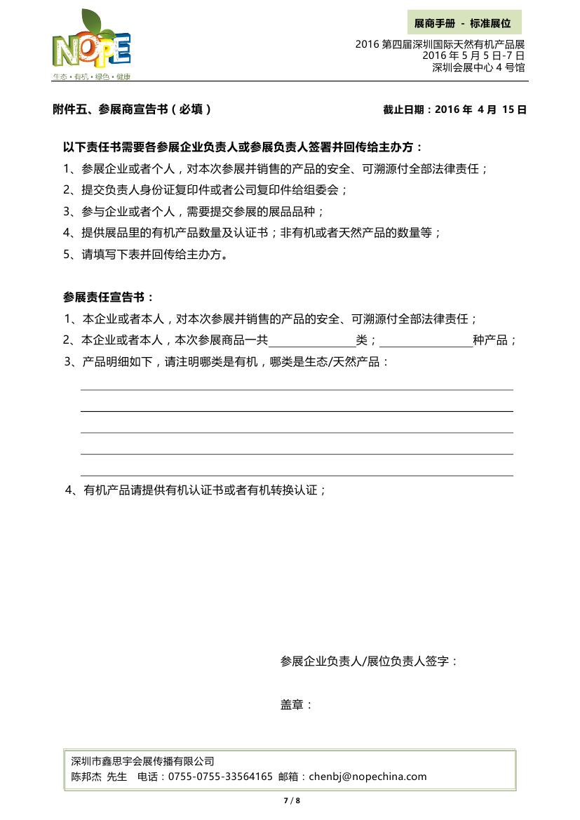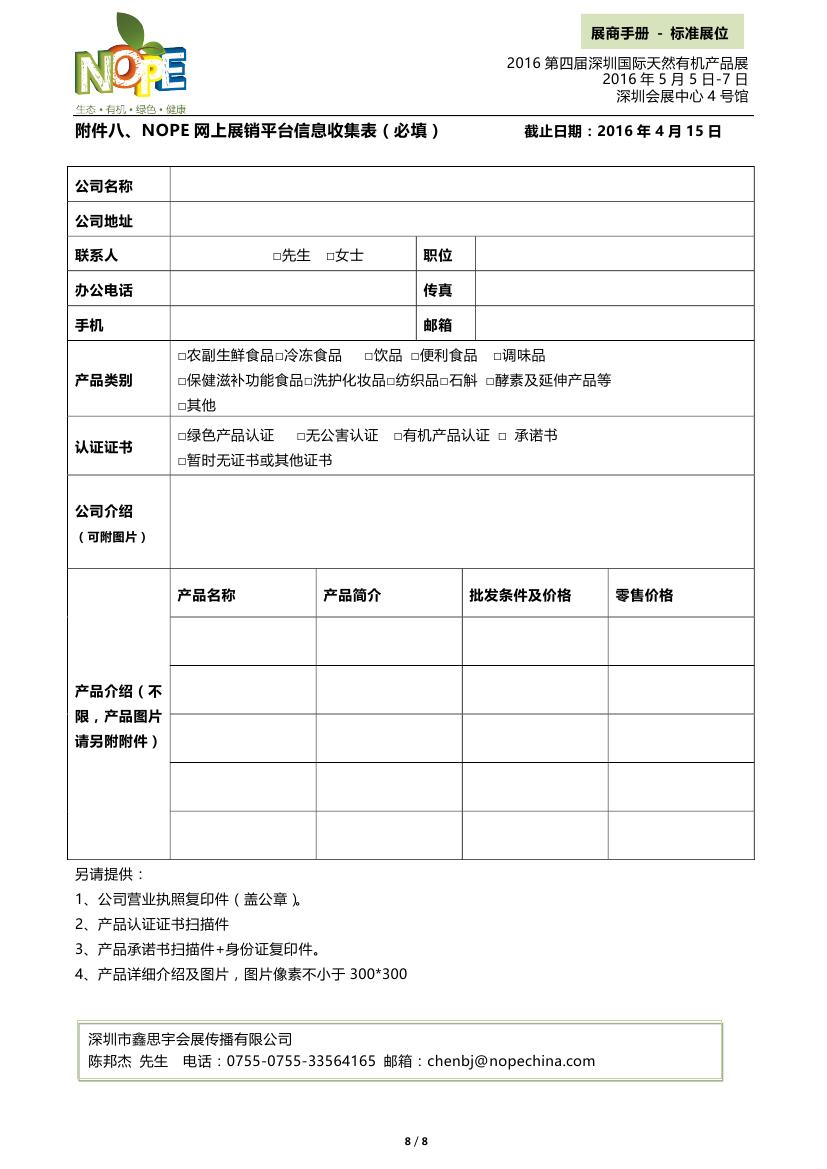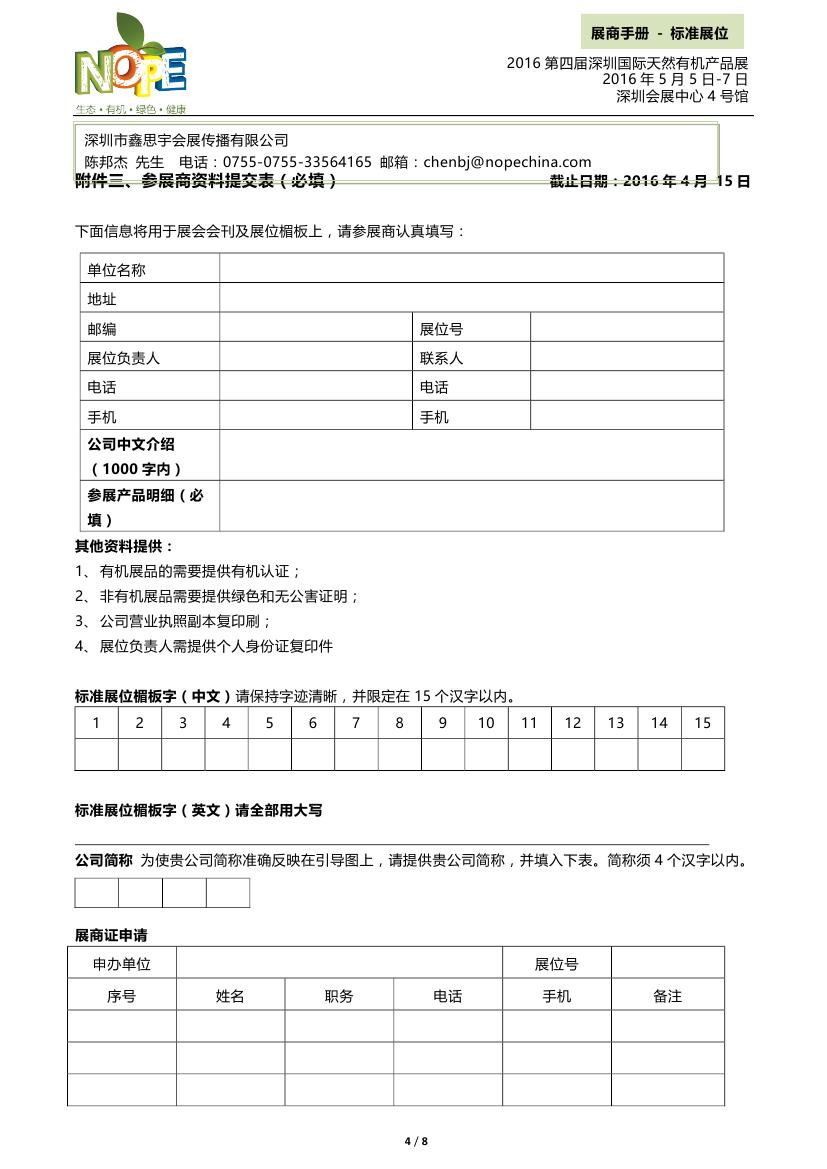 附件1:标准展位必填-2016第四届深圳国际天然有机产品展-XXX公司名.doc