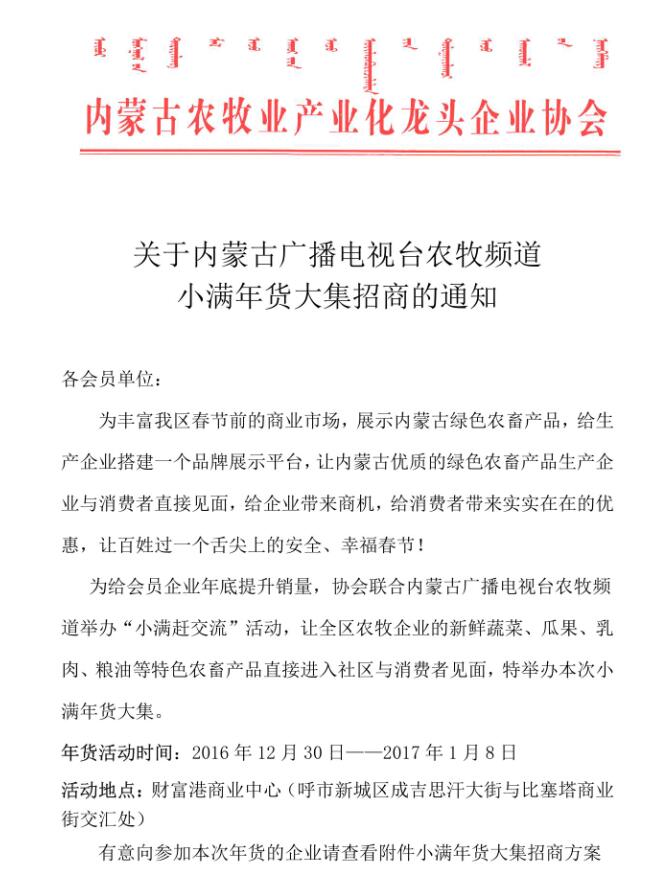 关于内蒙古广播电视台农牧频道小满年货大集招商的通知