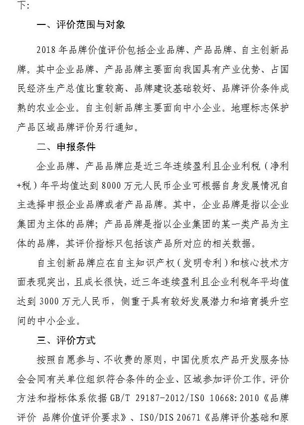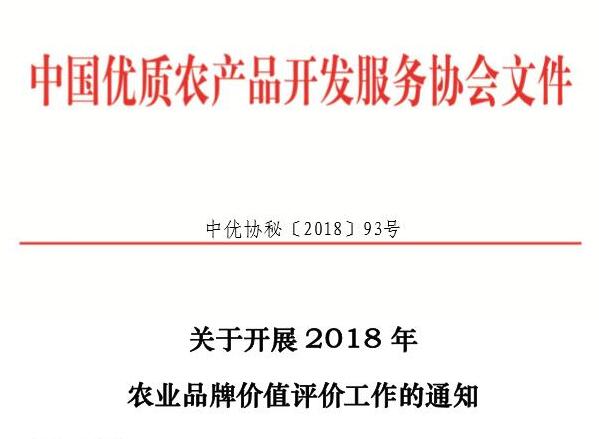 关于开展2018年农业品牌价值评价工作的通知